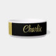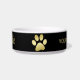 Gouden glanzende hondenpoot op zwarte achtergrond voerbakje