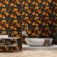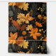 Een opvallend herfstthema met gedurfde en rijke goudgele en verbrand-oranje bladeren tegen een diep zwarte achtergrond. De ingewikkelde details van de bladeren, samen met de subtiele opname van bessen en varens, creëer een gevoel van warmte en textuur. Het gedempte donkergroene en grijze gebladerte voegt diepte toe, waardoor de levendige herfstkleuren opvallen en de essentie van het herfst-seizoen met elegantie inkapselen.