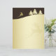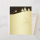 Elegant gouden kersttekening met een gouden silhouet van een rendier en een boom met een prettige kerstgroet op een bruine achtergrond.