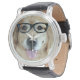 Iedereen houdt van een nerd, nietwaar? Dit horloge heeft een foto van twee golden retriever honden met een zwarte nerdbril.