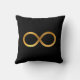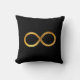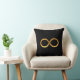 Elegante sierkussen met een gouden oneindigheidssymbool op een zwarte achtergrond.