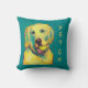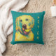 Deze aanpasbare kussen zijn voorzien van een gouden rekwieg (of misschien zie je het als een witte labrador rekruter) die een gele tennisbal haalt. Verlaat de vermelding " FETCH " of voeg de naam van uw hond of uw familienaam of de naam van het kind toe