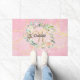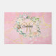 Mooie monogram voormat, met een mooie witte naam in schrijfletter met een bijpassende gouden initiaal omlijst door een delicate waterverf bloemrozenkrans op een roze geode agaat achtergrond. Personaliseer om een speciaal aandenken cadeau te maken om te koesteren! Ontworpen door Thisisnotme