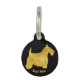 Gouden Scottie Personaliseer U kunt dit ID-label personaliseren met de naam van uw hond aan de ene kant en uw naam en adres aan de achterkant. Kies uw eigen lettertype, kleuren en achtergrondkleur.