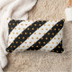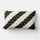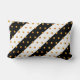 Chique werpkussen met elegante gouden stippen op een zwart-wit gestreepte achtergrond.