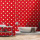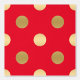 Gouden stippen in een naadloos patroon op een rode achtergrond.