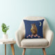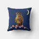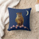 Gouden Uil, bloemen en halve maan op Navy Blue Kussen