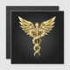 Gouden veelhoekige Caduceus-symbolen op zwarte geïsoleerde achtergrond. Low poly symbool van de geneeskunde.