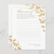 Gouden boho vlinders en glitters (digitaal, geen echte folie!) versieren deze eenvoudige en elegante aangepaste "Wiens herinnering?" spelkaart voor een bruidsmeisjesfeest met moderne script kalligrafie. Personaliseer het volledig, met de naam van de bruid en de datum.