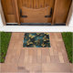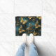 Een elegante deurmat met een vlinderpatroon in glinsterende gouden tinten en gloeiende blues.