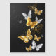 Goud, juwelen en witte vlinders op zwarte achtergrond. Golden vlinder.