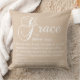 Een decoratieve kussen voor thuis met het woord "Grace" en onder de definities voor het woord.