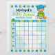 Kleurrijke trainingskaart met een schattig jongetje met een blauwe potje op zijn hoofd, toiletpapier en een rubberen eend. Cute kikker op zijn potje. Zijn T-shirt zegt (TRAINEE). Pas het aan met de naam van uw kind of vul thuis in. Plaatsen voor de beloning van sticker voor elke dag van de week. Maak pottentijd leuk! Aanpassing van T-shirts, mokken en nog veel meer! RozeInkArt origineel!