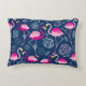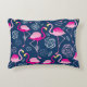 Grafisch patroon van roze vlammen op een donkerbla accent kussen