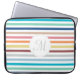 Voeg uw monogram initiaal toe aan dit schitterende gestreepte patroon Neopree Laptop Sleeve 15 inch met pikante horizontale strepen in een stijlvol regenboogpalet met trendy lentekleuren. Dit frisse en kleurrijke ontwerp zorgt er zeker voor dat het meisje uit de meisjes komt die van mode houden.