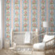 Grandmillennial Stripe Floral Blue Pink Wallpaper Behang