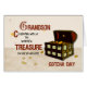 Een houten kofferbak vol gouden munten en juwelen. Een geweldige illustratie van een piratenschat die je kleinzoon verrast op de verjaardag van zijn adoptie. Ik wens hem een Happy Gotcha Dag en vier met je kleine jongen.