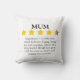 Grappige 4-sterrenclassificatie en review kussen voor je moeder, ideaal voor Moederdag en verjaardagen of gewoon om haar te verrassen, gegarandeerd een glimlach op te wekken (als je moeder een gevoel van humor heeft dat is. © Julie McIver