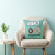 Een leuk kussen voor vader van de kinderen! Met een blauwgroen achtergrond met witte sprinkhaandecoratie, twee schattige cartoon donuts, spraakballonnen met humoristische tekst die kan worden aangepast, de tekst 'BEST DAD EVER' en de kindernamen.