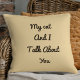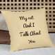 Dit grappige en stijlvolle beige kussen met kattenthema bevat het citaat "My Cat And I Talk About You" in een modern typografisch ontwerp. Een perfect gepersonaliseerd cadeau voor kattenliefhebbers, besties, huisgenoten en huisdiermoeders, het is aanpasbaar met uw eigen naam of boodschap. Geweldig voor gezellige banken, slaapkamers en minimalistische ruimtes. Voeg humor en katachtige charme toe aan uw interieur. Ideaal voor verjaardagen, housewarmings of cadeaus onder de $ 50.