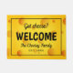 Grappig gele zwitserse kaasfamilie verwelkomt de hormoon. Aangepaste deurmat voor gezinnen, bedrijven, bedrijven, winkels, winkels, medewerkers van kantoor, newlyweds, de heer en het echtpaar, enz. Voeg uw eigen welkomstbericht, adres, huisnummer, familienaam, monogram, achternaam of grappig citaat toe. Kassiscadeauidee voor nieuw huis, verhuizing of huisverwarming. Fun typografie-sjabloon met afbeelding van de voedselachtergrondtextuur. doormatbord met fancy grens. Creëer je eigen humoristische mat / tapijt voor de voordeur, de ingang of de hal. decor / decoraties voor uw luxe huis. Ideeën voor 'n decor voor 'n nieuw huis. Verkrijgbaar in kleine en grote/grote afmetingen.