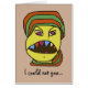 Cartoon personage ziet er niet al te leuk uit. Gele huid, paarse ogen, kleurrijke tanden. Zwarte print "Ik zou je kunnen eten...". Hallo Tekst in kaart: "... of ik zou gewoon kunnen zeggen Tekst kan eenvoudig worden aangepast.