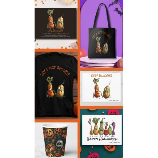 Funny scared veggie Halloween wenskaart met personalisatie. u kunt de tekst en het lettertype eenvoudig bewerken via de bewerkingsknop.