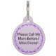 Deze Mooie Bel Mijn Moeder Penning is perfect voor honden of katten die van hun eten houden. Personaliseer met je eigen telefoonnummer op de achterkant.
