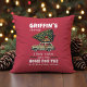 Dit kerstkussen toont een boompje op een stationwagon die thuiskomt van een boerderij met het gezegde: een familietraditie sinds 1988, thuis voor de leuke ouderwetse kerststal. Personaliseer het met uw familienaam en datum vastgesteld. Een leuk, feestelijk kussen voor uw vakantie decor!