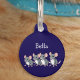 Dit gepersonaliseerde Cat ID label heeft een leuk cartoon muisontwerp en de naam van je kat, op een stijlvolle donkerblauwe achtergrond. Of het nu voor uw eigen huisdier is of als een uniek cadeau voor kattenliefhebbers, dit label combineert humor en stijl. Personaliseer de achterkant met uw adres en telefoonnummer of andere tekst.