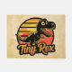 Schattige retro t-rex dinosaurus silhouet bij zonsondergang met "Tiny Rex" tekst deurmat.