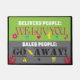Grappige levering mensen we leven je verkoop gaan deurmat