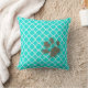 Grappige Paw Print op Aqua Color Quatrefoil Kussen