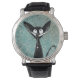 Grappige Schattige Zwarte Kat Kunst op Blauwe Dama Horloge