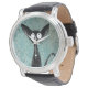 Katten hebben niet echt horloges nodig, maar misschien vind je dit kattenhorloge leuk. Verwijder de getextureerde blauwe damast achtergrond als u wilt en kies een achtergrondkleur. Veel meer grappige en schattige kattencadeaus voor kattenliefhebbers op Paul Stickland's StrangeStore.