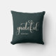 A modern simple throw pillow in dark green with the word "Grateful", personalize with your family name. This pillow is the perfect addition to your home decorations, or makes a beautiful gift.