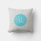 Deze kussen hebben een grijs chevron-patroon op de achtergrond met een blauwe cirkel en een monogram met drie letters in het midden.