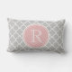 Gray Quatrefoil Patroon, Roze Monogram Kussen