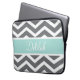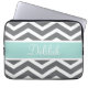 Gray White Chevron Blauwgroen naam Laptop Sleeve