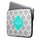 Gray White Moroccan #5 Brt Aqua 3 Initiaal monogra Laptop Sleeve