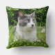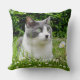 Gray & White Tuxedo Cat & Flowers Kussen