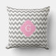 Gray Wht Chevron Pink Quatrefoil Monogram Kussen