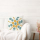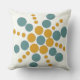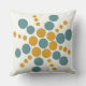 Een piloot met een grijsblauw en geel ochre met een stempel en stervormig ontwerp op een witte kussen, geïnspireerd door batik. Voor een ontspannen levensstijl. Ontworpen door:—)