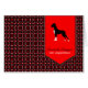 Great Dane in zwart en wit, niet gecoupeerd, op stippelpatroon in rood en zwart, sjabloon, gebruik eigen tekst ervoor.