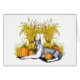Najaars en Halloween kunstwerk van Danes-R-Us met een Grote Deen met een achtergrond van maïs en pompoenen vooraan.