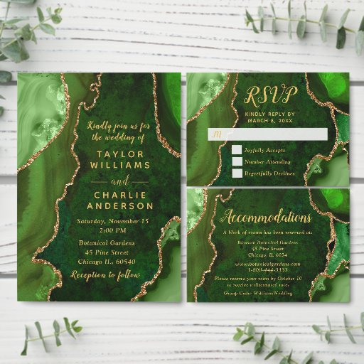 Green and Gold Agate Marble WeddingOntworpen door Kirsty W