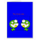 Een cartoon afbeelding van twee schattige kalkgroene monsters op een heldere blauwe achtergrond met de tekst "Je bent zo schattig". Deze kaart zou perfect zijn om een vriend te sturen als grap.