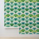 Vet kleurrijke groene boogvis schaal geometrisch patroon verschillende tinten groen, crème en turqyoise blauwgroen blauw. Kalmerende natuur geïnspireerd kleurenpalet ideaal voor biophilic design. Retro maar nog steeds modern dit gedurfde patroon is perfect voor accentmuren. Peel en stick behang kunt u uw kleine ruimte interieur te upgraden en uw huur te personaliseren met uw unieke design esthetiek. Geen saaie witte dozen meer!