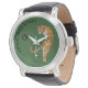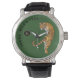 Green Background van Young, Wild & Free Tiger Mono Horloge