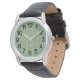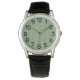 Het horloge van deze mannen heeft een kunstdecoontwerp van driehoeken en diamanten die lijken op kegels in lichtgroen en sage groen.